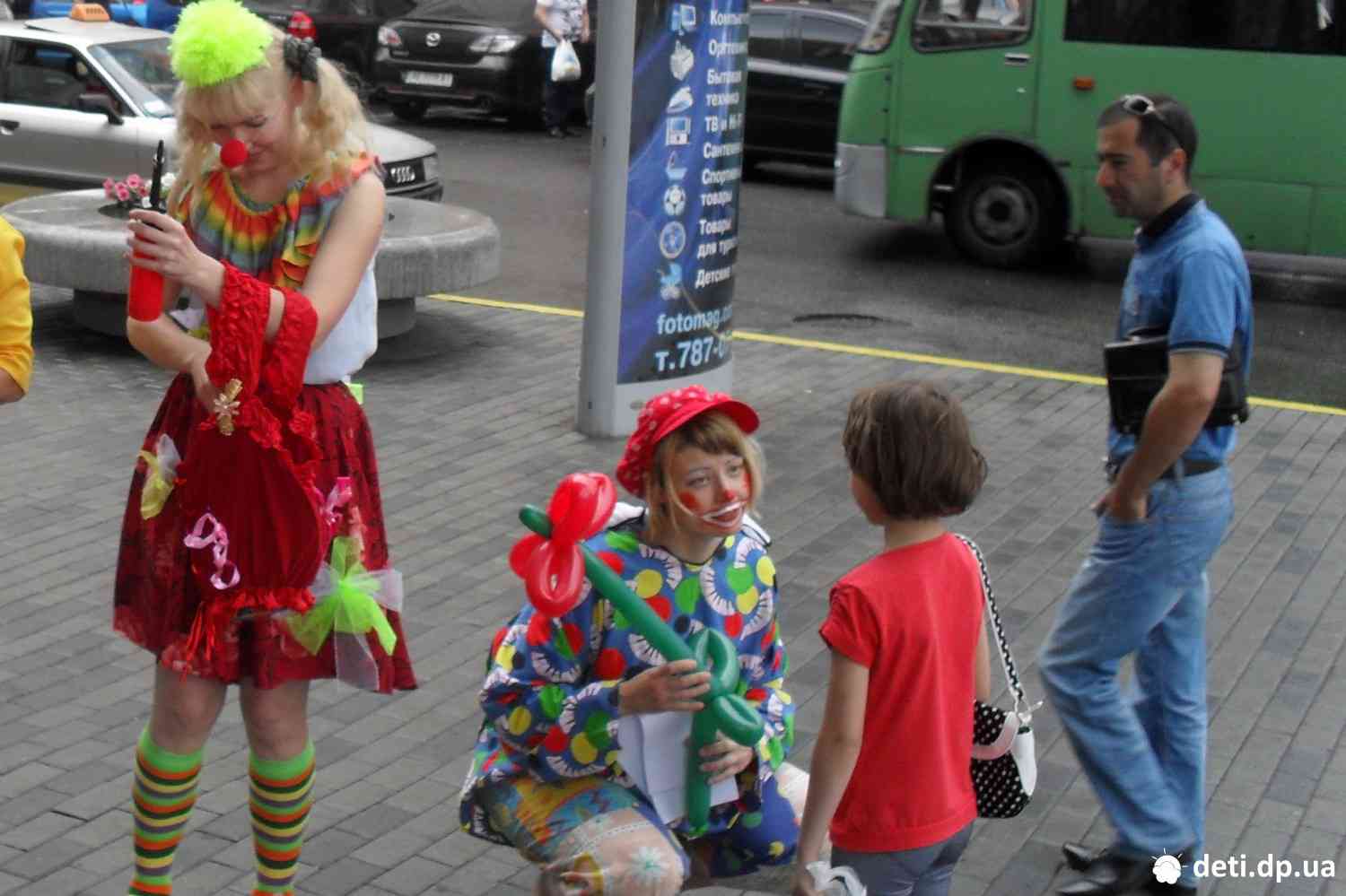 Команда клоунів на вулицях міста: для когось - чудно і незрозуміло, для когось - забавно та смішно, але дітям - незмінно радісно і цікаво.