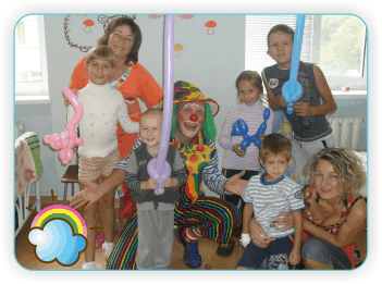 Для всіх діток в палаті ми зробили звіряток та квіточки з кульок, кожен з них пообіцяв посміхатися квіточці, якщо раптом не буде сонечка і добре годувати вихованців: котиків Кузю та Тішу, собачку Берту.
