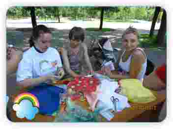 Але все-таки це було не зовсім звичайне паркове дитяче свято. Тому що від душі повеселившись зі своїми малятами, батьки дізналися про чужих діток, яким потрібна допомога і захист. Тому що опускалися перші гривни, п'ятірки, і десятки в скриньку для мам і дітей, що виявилися в складних життєвих ситуаціях. Не менш за дітей раділи волонтери, що отримали можливість ось так, на повітрі, в дружній атмосфері, поспілкуватися з дітьми і один з одним. Адже далеко не всі з нас зустрічаються між собою часто. Привітатися і перекинутися парою фраз з однодумцями, комусь сказати «спасибі», домовитися про зустріч з кимось, за ким дуже скучаєш, а з кимось просто познайомитися. Я знаю небагато співробітників і волонтерів «Сяйва веселки», але так приємно було бачити сяючих відповідно назві осіб колишніх і нових знайомих. А для когось це було трохи більше, чим свято і зустріч – це був крок по своїх внутрішніх духовних сходах, крок до затвердження нових цінностей: нашим волонтерам допомагали хлопці з центру адаптації наркозалежних.