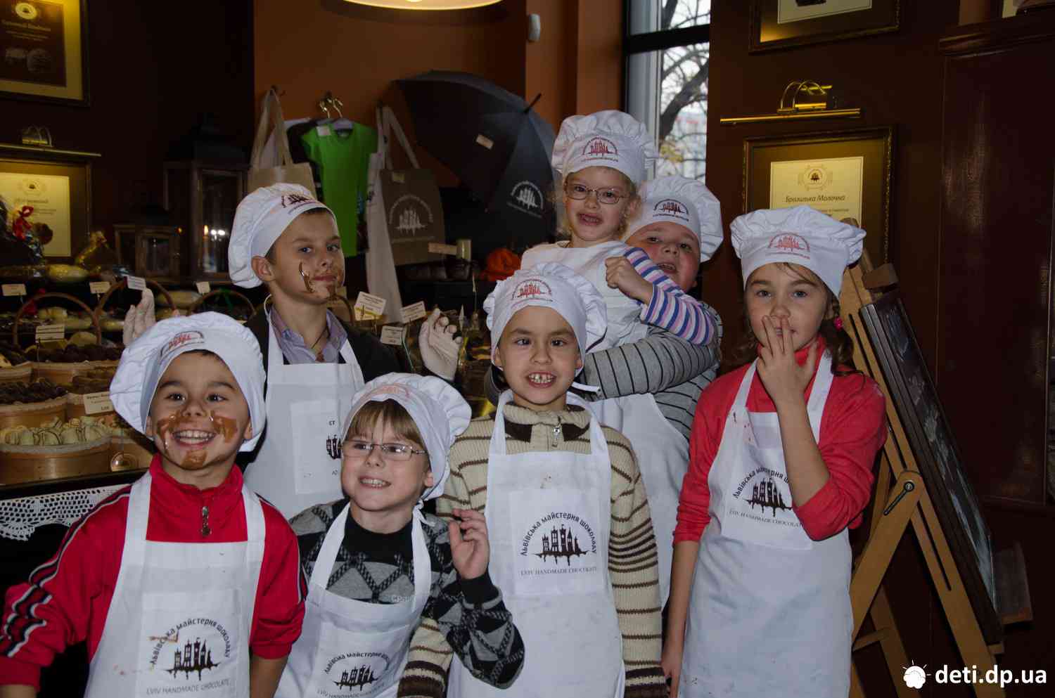 власний дизайн. Перед початком роботи маленьким шоколатьє наділи білосніжні
