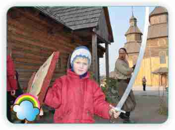 На вулиці нас чекало продовження екскурсії по історико-культурному комплексу «Запорізька Січ», де був знятий фільм «Тарас Бульба». Ми заглянули в будинок, школу, помилувалися інтер'єром і довідалися, як жили козаки. Потім нам показали церкву Покрова Пресвятої Богородиці й розповіли, як козаки захищали батьківщину, віру й народ. Для них віра в Бога була дуже важлива.